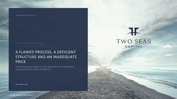 © All rights reserved. Two Seas Capital LP A FLAWED PROCESS, A DEFICIENT STRUCTURE AND AN INADEQUATE PRICE INVESTOR PRESENTATION TWO SEAS CAPITAL LP OCTOBER 2025 STOCKHOLDERS SHOULD VOTE AGAINST THE PROPOSED ACQUISITION OF CORE SCIENTIFIC