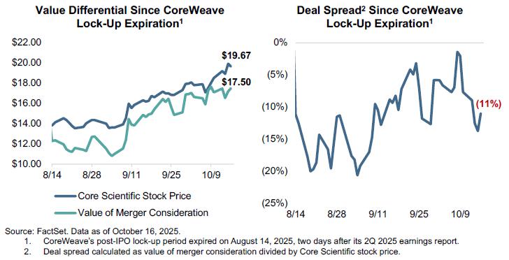 deal spread that has persisted since the post-IPO lock-up period on CoreWeave’s stock expired on August 14.