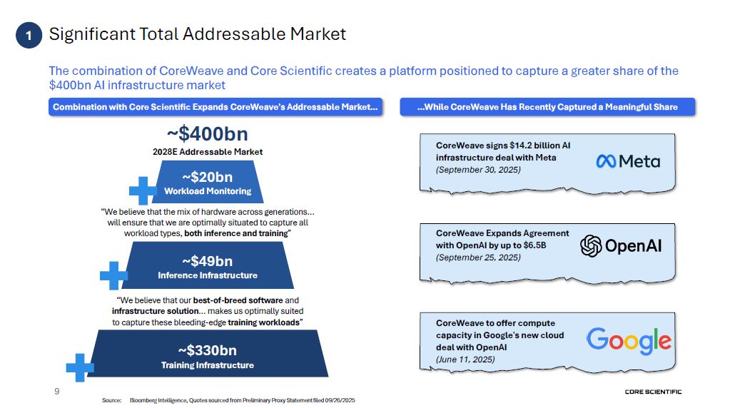 infrastructure market Combination with Core Scientific Expands CoreWeave’s Addressable Market… …While CoreWeave Has Recently Captured a Meaningful Share CoreWeave Expands Agreement with OpenAI by up to $6.5B (September 25, 2025) CoreWeave