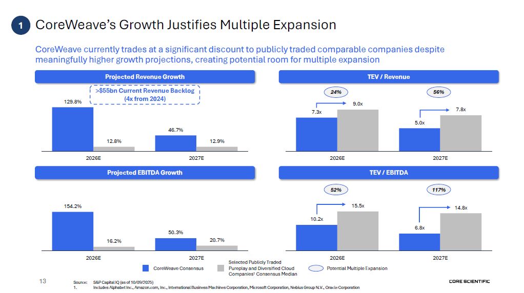 10/09/2025) 1. Includes Alphabet Inc., Amazon.com, Inc., International Business Machines Corporation, Microsoft Corporation, Nebius Group N.V., Oracle Corporation CoreWeave currently trades at a significant discount to publicly traded
