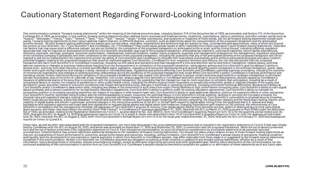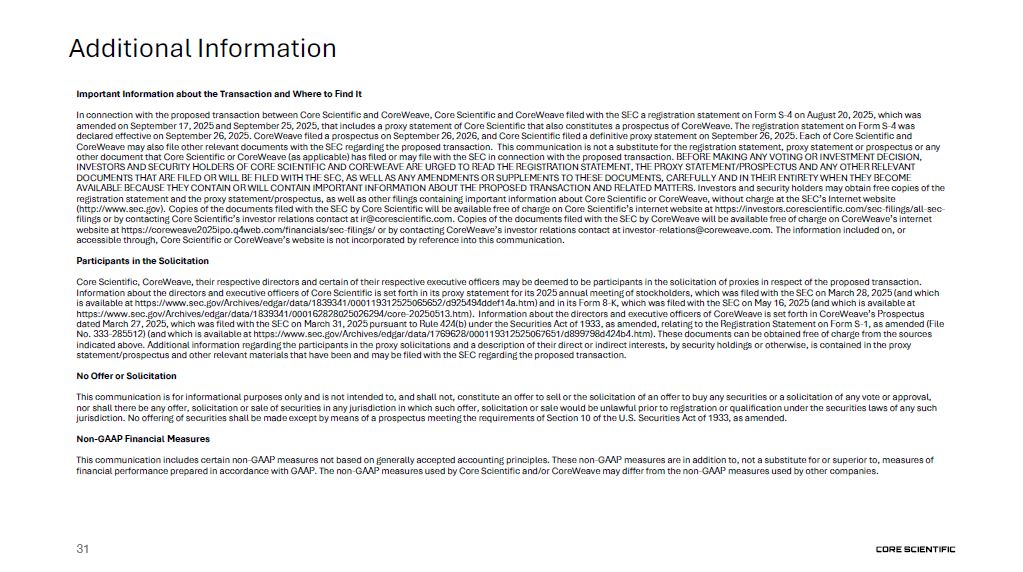 Core Scientific filed a definitive proxy statement on September 26, 2025. Each of Core Scientific and CoreWeave may also file other relevant documents with the SEC regarding the proposed transaction. This communication is not a substitute for